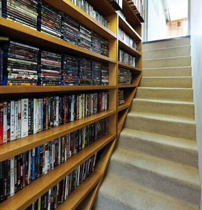 收纳重点:书架延伸至屋顶,增加立面空间收纳