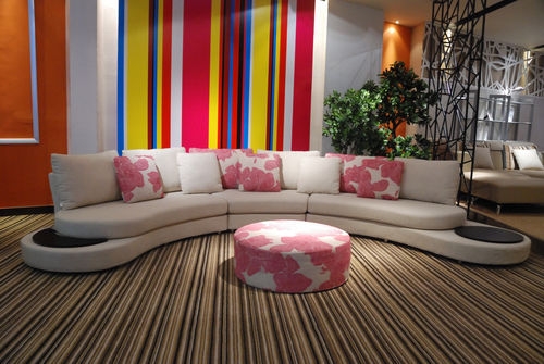 一般来说,大面积的天棚,墙面适合采用白色或浅色调,而地面则可采用较深色彩,小空间适合用浅色调。